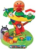 アンパンマンのお口へボールを入れてスタート! アンパンマンたちの顔をしたボールがくるくるコロコロ転がってボタンを押すとボールが階段を上がってバイキン城へ。最後はお池でゴール。対象年齢3歳以上。